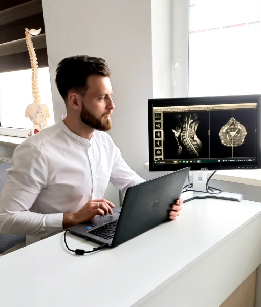 Badanie manualne i funkcjonalne nie ogranicza się do sprawdzenia miejsca objętego chorobą. Podczas tej części wywiadu sprawdzam całe ciało pod kątem ograniczeń w ruchomości, bolesności, reakcji organizmu na pewne czynności i ruchy. Wsparcie wywiadu odpowiednimi testami ortopedycznymi, neurologicznymi i z zakresu medycyny internistycznej daje większą pewność w ocenie problemu pacjenta i w razie niepokojących objawów, poproszę o konsultację z lekarzem odpowiedniej specjalizacji.