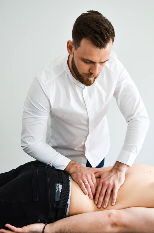 Zabieg podczas wizyty to przede wszystkim specjalistyczna terapia manualna z zakresu fizjoterapii i osteopatii. Pracuję z całym organizmem, nie skupiając się tylko na miejscu występowania dolegliwości bólowych.